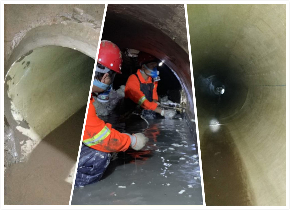 本工程为玉林市江滨大道污水管道抢修工程,于2019年6月8日进场施工,,共计完成33米DN1350污水管道修复工作。