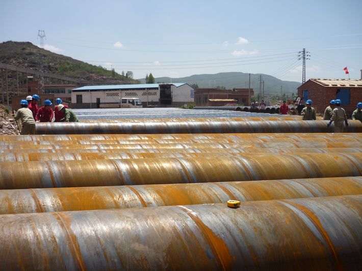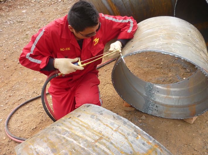 在建设单位的积极协调下,在项目部全体员工的共同努力下,克服天气多雨,作业场地狭窄,管材要多次倒运等施工困难,目前已完成φ720钢管防腐2km,预制弯头24个,布管900米,工程施工进展顺利。