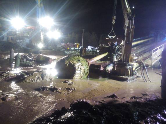 武汉市天然气高压外环线连通湖至府河西岸段,管线规格为:Ф813X15.9mm,管线设计压力6.3MPa。定向钻穿越施工水平长度为1411.65米,穿越深度为15米。项目历时47天于2014年11月30日19:07分顺利完成管线回拖作业。