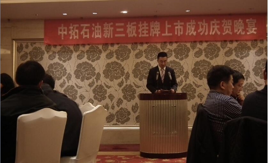 徐效华董事长代表中拓石油全体员工向各位领导、各位来宾的到来表示衷心的感谢。徐总在仪式上说,能成为濮阳市在新三板挂牌的企业,主要得益于濮阳市良好的发展环境、完善的配套政策,得益于濮阳市各级领导关心、关怀和支持,也应该感谢濮阳市金融办对挂牌上市工作的细心指导。对我们来说,今天的挂牌只是一个新征程的起点,中拓石油挂牌后,将长期坚持立足主业、专注主业、发展主业;并通过不断的技术创新和技术引进,充实技术内涵,提升专业品质,扩大服务范畴。努力以不断增长的优异业绩回报政府、回报市场、回报投资者。