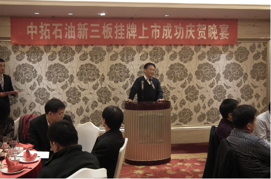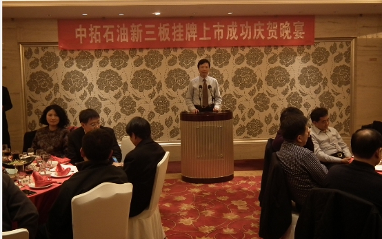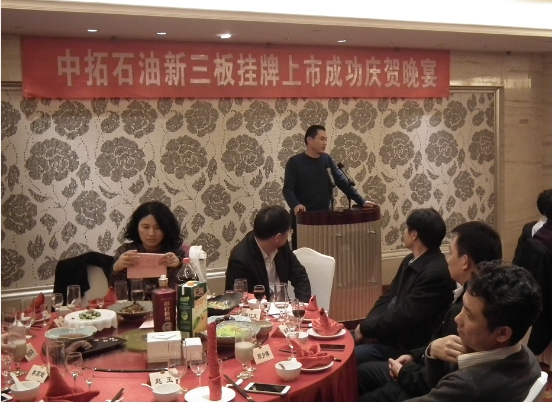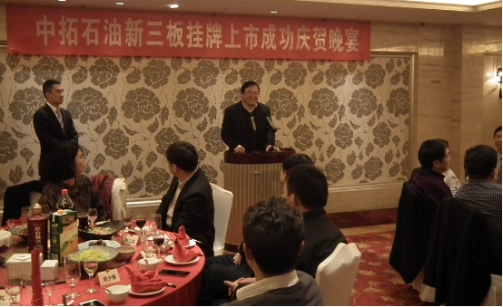 2015年12月15日,我公司新三板挂牌仪式在北京举行。濮阳市人民政府副市长徐慧前先生,中石化集团中原石油勘探局副局长杜广义先生,濮阳市华龙区人民政府区长高尚功先生,公司董事长徐效华先生、副总经理陈建霞女士、总经理助理郭循昌先生,等共同出席了中拓石油的挂牌仪式(80人左右)。