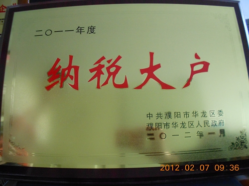 热烈庆祝我公司获得濮阳市华龙区纳税大户称号 (图)