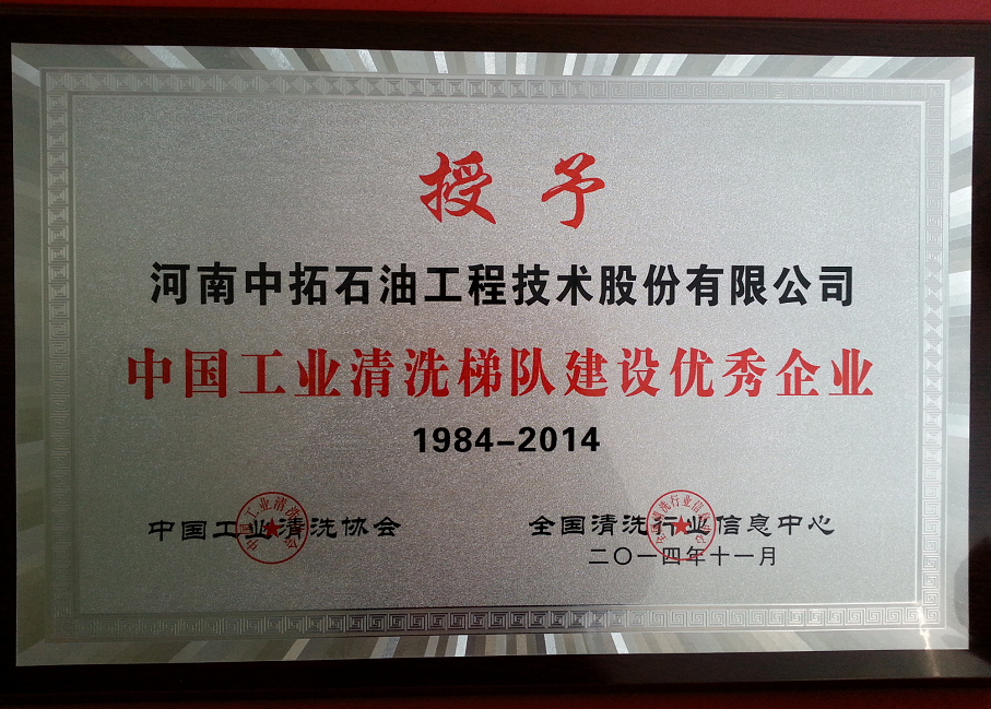 公司获颁“中国工业清洗30年梯队建设优秀企业”