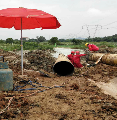 2018年6月10日武汉天然气穿越项目顺利拖管成功穿越处地区等级为二级,设计压力为7.5MPa,管径为Φ610mm。定向钻穿越水平长为1566m