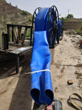 变形后的软管拖入待修复管线。此处在管口装有进口轮以防止管口对软管坏。