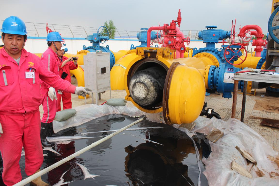 6月21日14:00塔榆首站收球成功,标志着历时6天的大牛地气田输气干线清管作业顺利竣工。