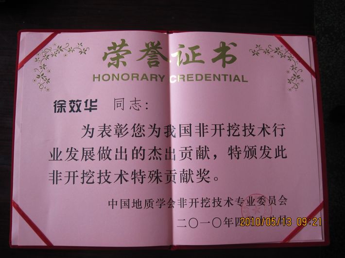 General Manager Xu Xiaohua of our company representant the company attended this conference. Since its fondation, our company actively explored the field of trenchless repairing, operated a large number of projects in the construction of municipality, gas, oil pipeline and accumulated rich experience in construction, which made a significant contribution for the trenchless technology’s application and promotion in practice. At the same time, our company actively participated in the acitvites par exemple international and national technical exchanges, seminars and information exchange, jointed to make trenchless technology standards and trained many outstanding talents of trenchless technology. Therefore, in this conference, General Manager Xu Xiaohua was awarded the "Special Contribution Award" by the China Society of Trenchless Technology and at the same time our company was also named the "special contribution unit".